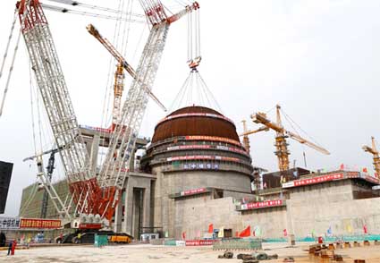 江蘇省、連云港市等地方政府和有關部門,國家核安全監管部門,以及股東方、監理公司、中外參建單位的領導和代表現場觀摩了本次吊裝作業。